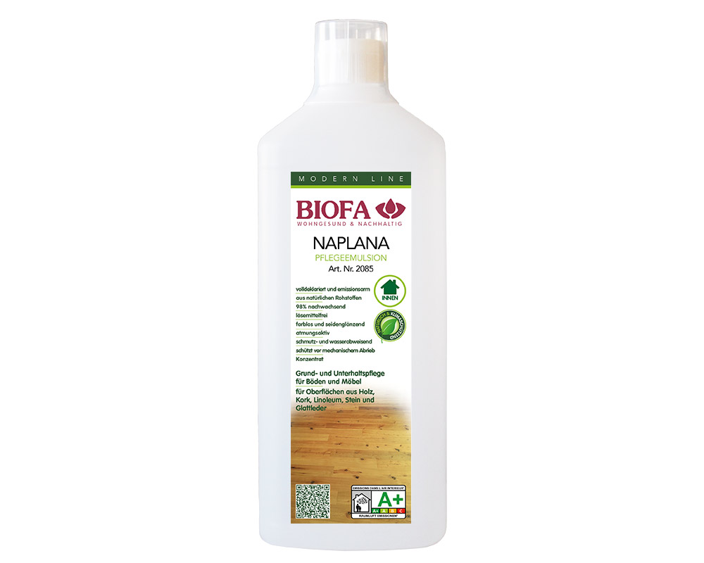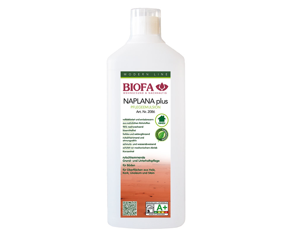 BIOFA Intensivölreiniger ist ein Grund- und Ölreiniger für Böden aus Holz, Kork und Linoleum, die mit Universal Hartöl 2044, Hartwachsöl 2055, Parkettöl 2059, Möbelöl 2049 und Arbeitsplattenöl 2052 behandelt sind.